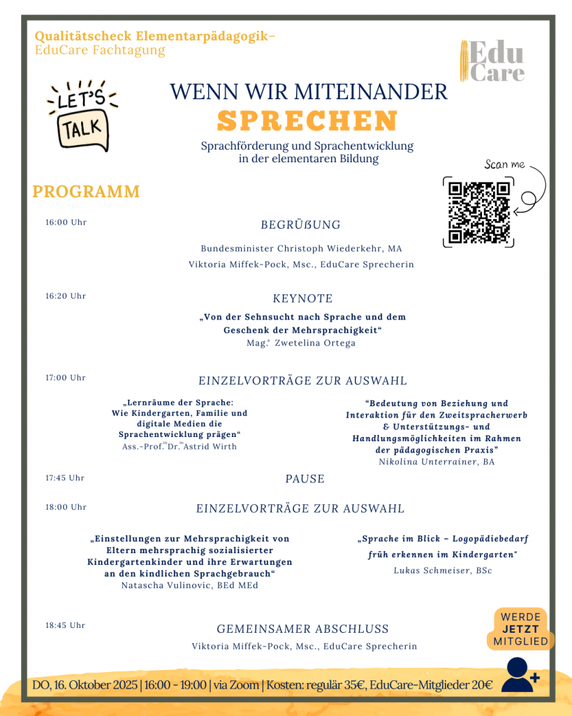 💶 Kosten: Regulär 35 €, EduCare-Mitglieder und Mitarbeitende der Mitgliedsorganisationen 20 €